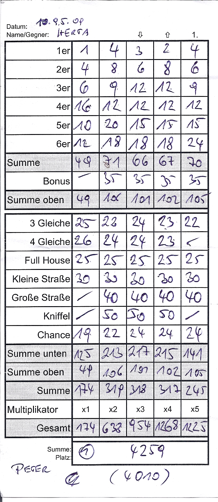 Das beste Spiel der fünften Runde (Bild) Das bisher beste Spiel (Bild) Spielvorlage (Download) Kontrollblatt (Rechenblatt) |
